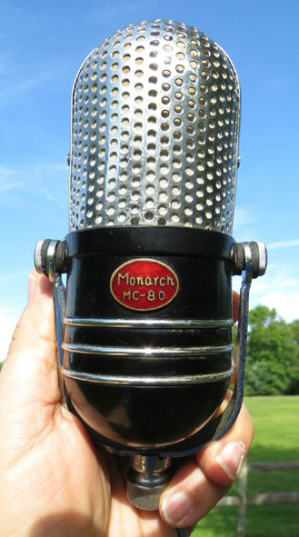 This 1960s Japanese Monarch MC-80 microphone, which is made to resemble an RCA-77 studio microphone |