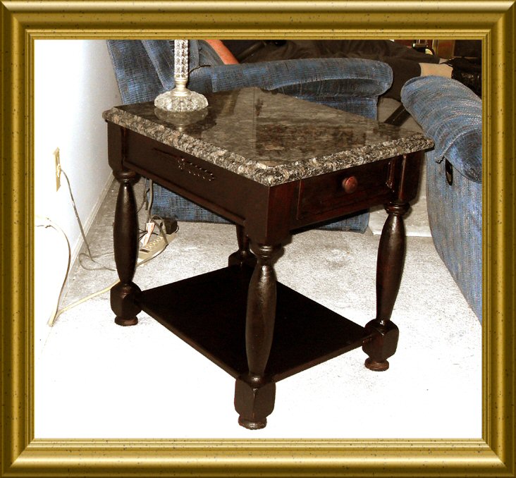 One of a set of matching custom granite end tables designed and built for a customer in Richmond. |
