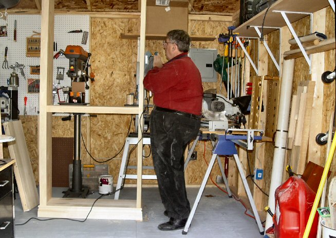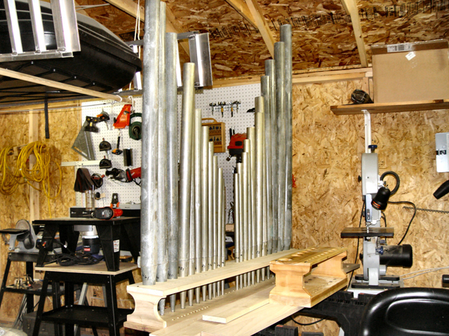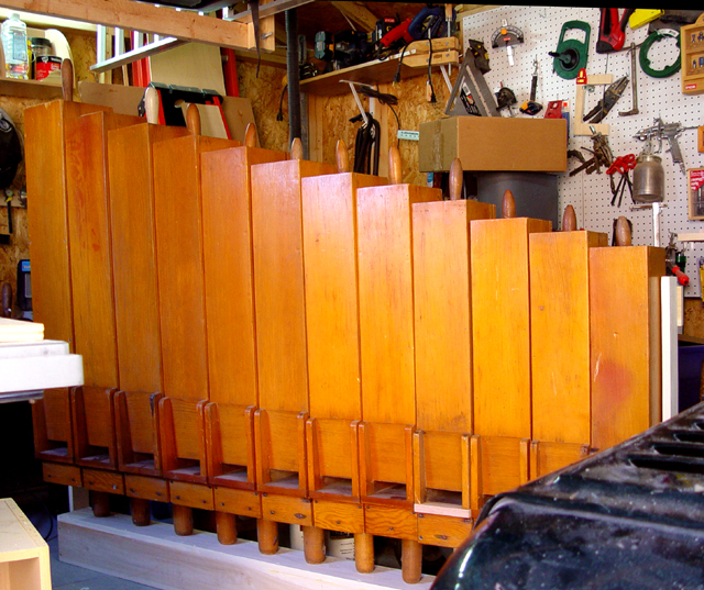 A small Positiv organ case under construction in our woodworking assembly room. |
