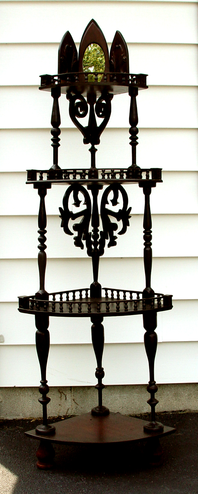 This authentically styled Italian curio stand was reproduced from an actual blueprint drawn in the early 1900s by a member of the DeMajo family. The original piece that was created from that blueprint, was destroyed in the Hurricane Katrina flood in New Orleans. |