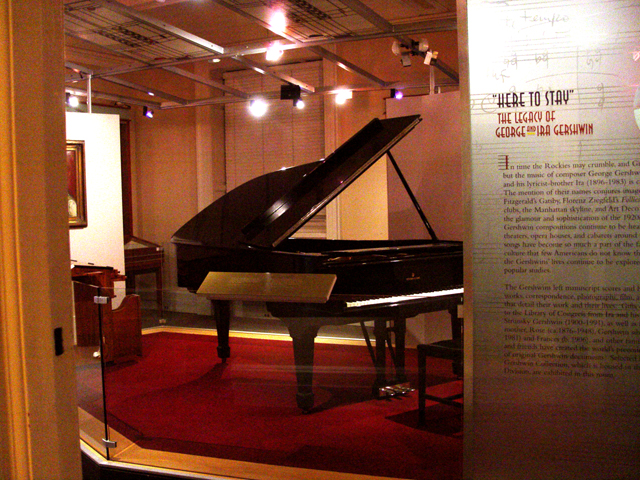 A trip to the Library Of Congress where original copyright music copies are stored. Below, George Gershwin's Steinway piano. |